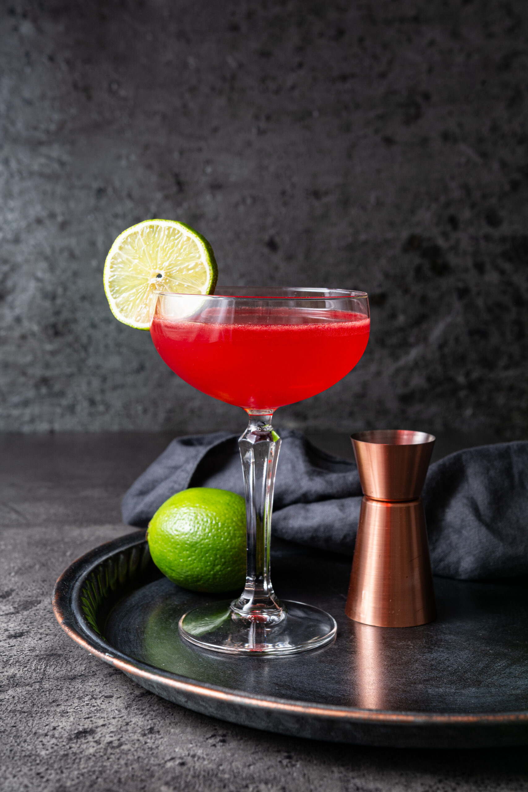 A chilled coupe with a juicy lime wheel on the edge for garnish is the best way to enjoy this cocktail. Hold onto the stem to keep your drink from warming up too quickly.
