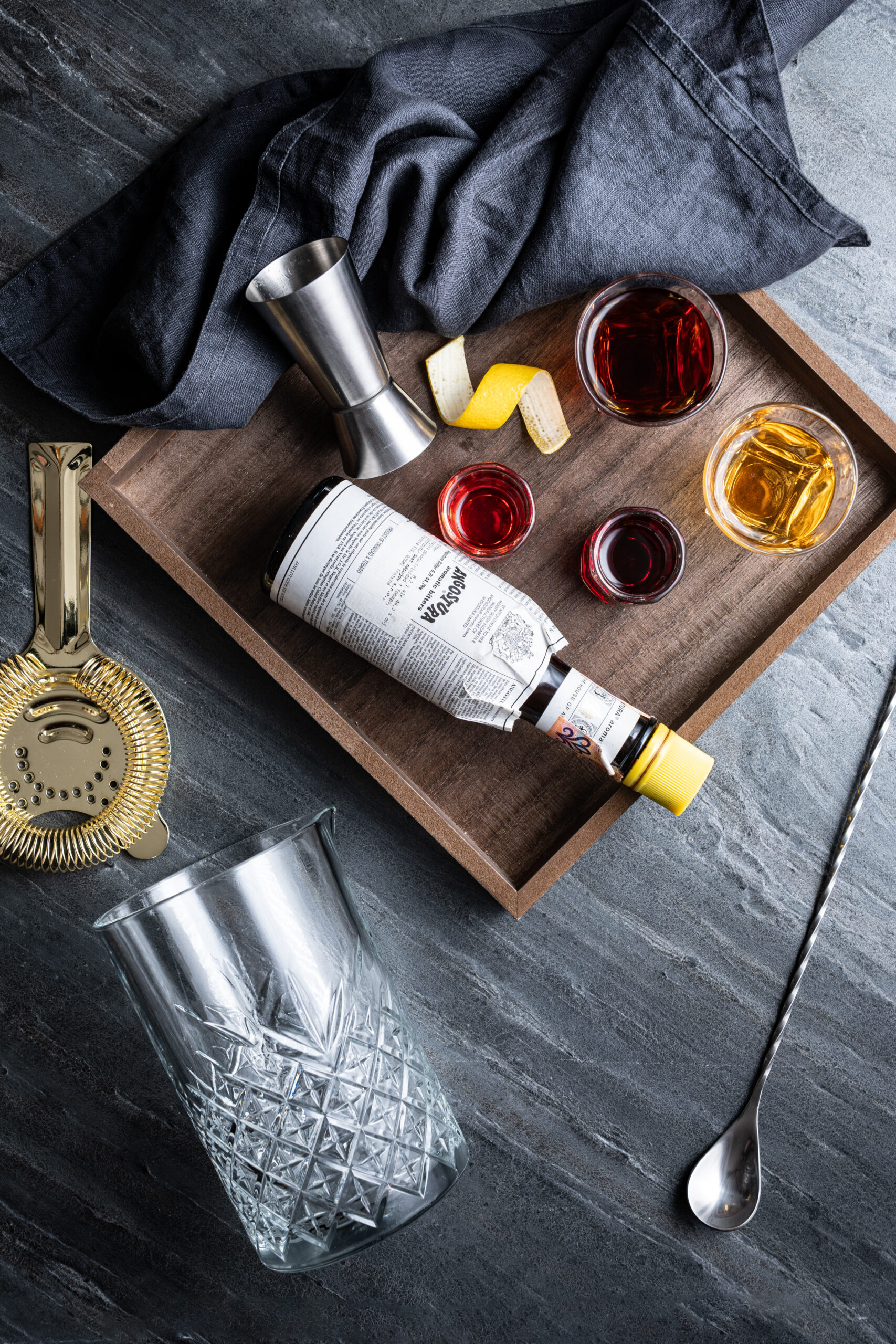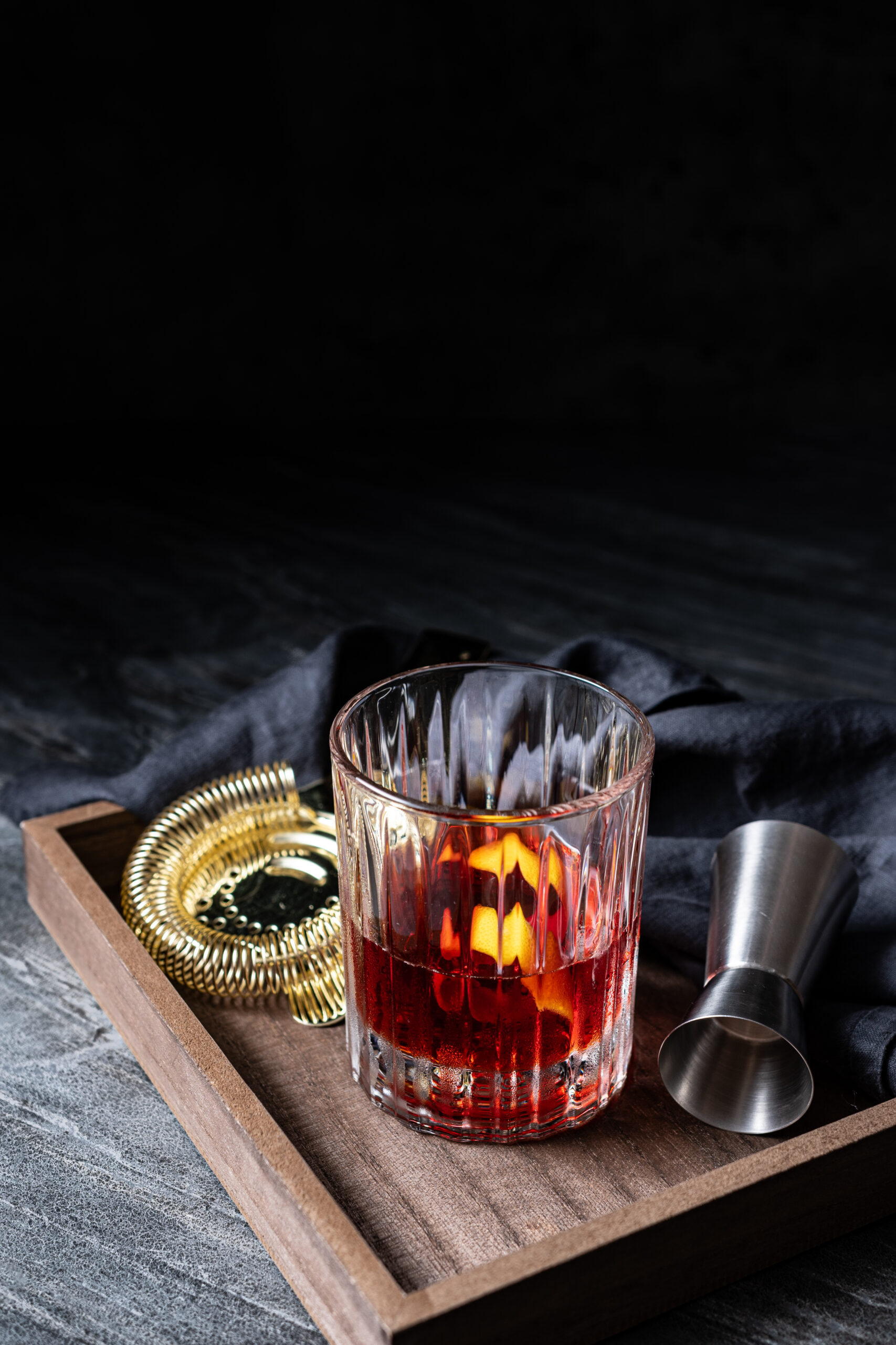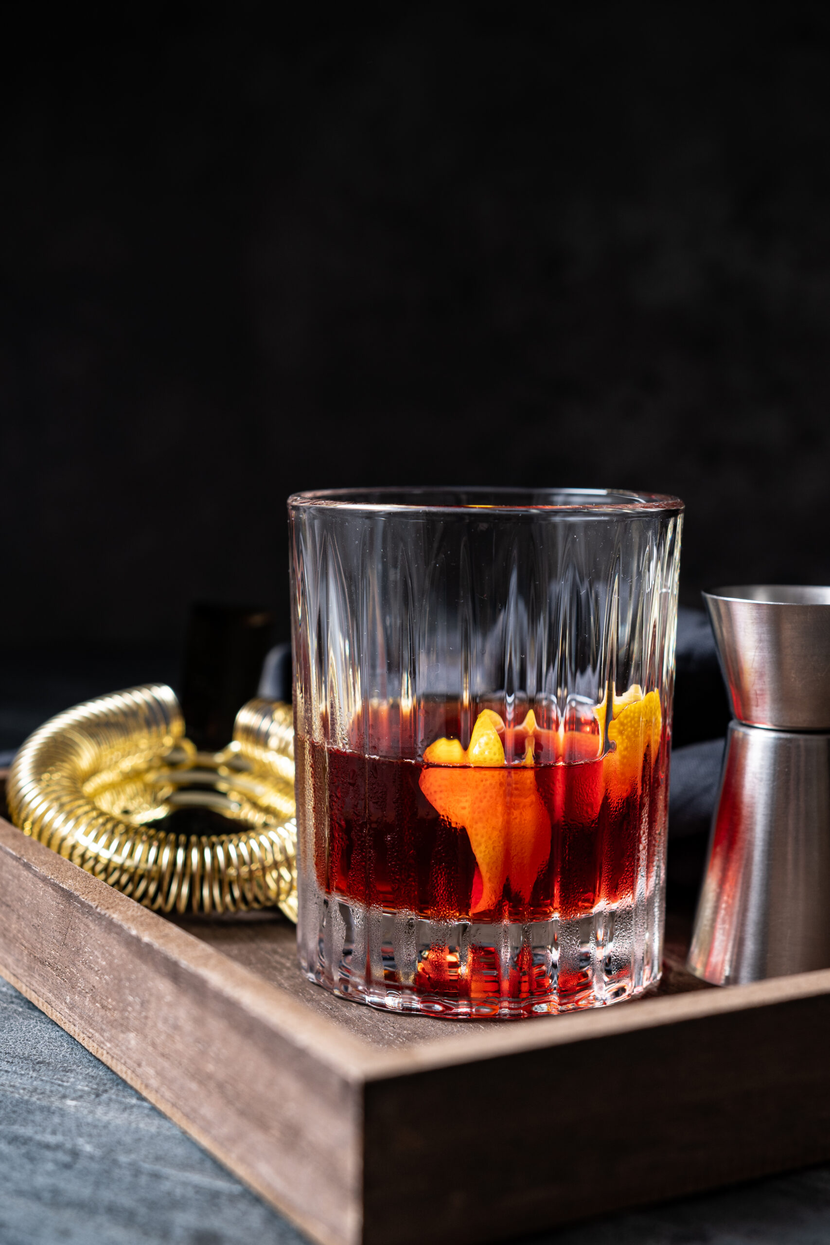 Invented by New York bartender Dale DeGroff in the early 2000s, this modern-day mixture from “King Cocktail” is inspired by historic sippers like the Sazerac and Old Fashioned. With the combination of bourbon and cognac, along with both the Peychaud’s and Angostura bitters, the Black Rose we’ll be mixing tonight finishes with a warm and robust sweetness.