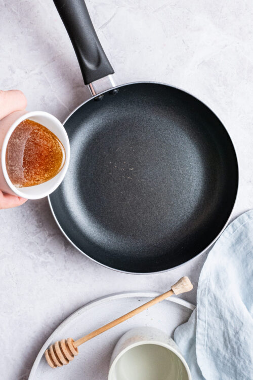 - Add the honey and water into a small saucepan.