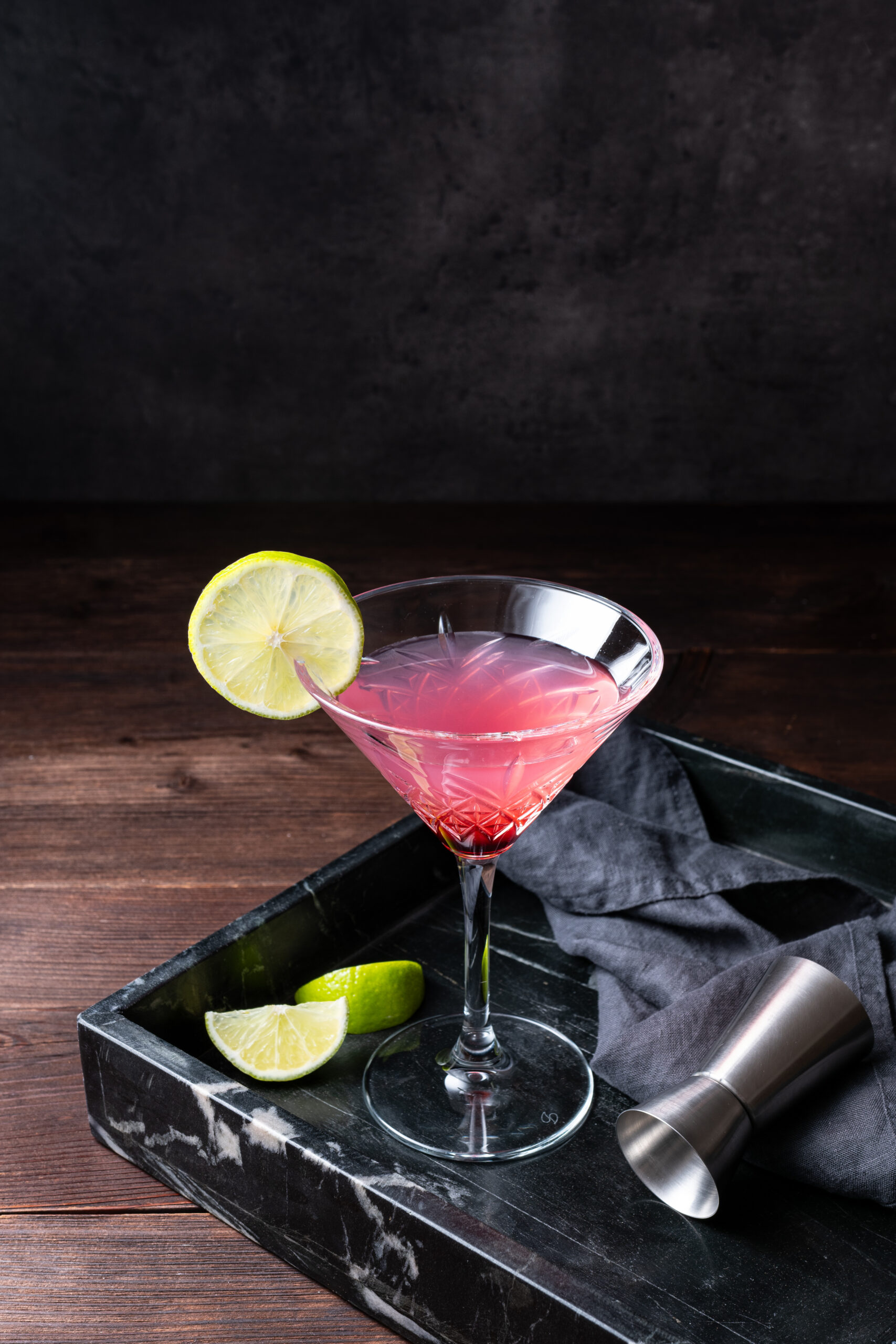 Chill a martini glass or coupe in your freezer for up to 30 minutes before serving. Once your drink is poured, garnish the rim with a fresh lime wheel.
