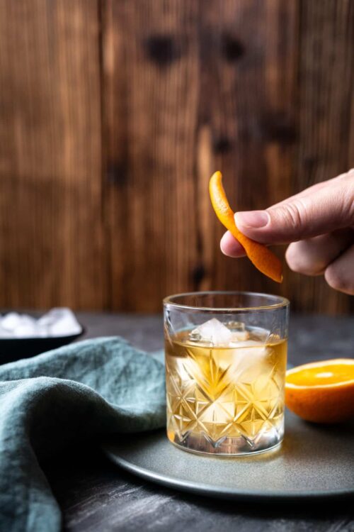 - Take a strip of lemon or orange peel, twist it over the glass to release the fragrant oils, and drop it into the cocktail for an enticing aroma.