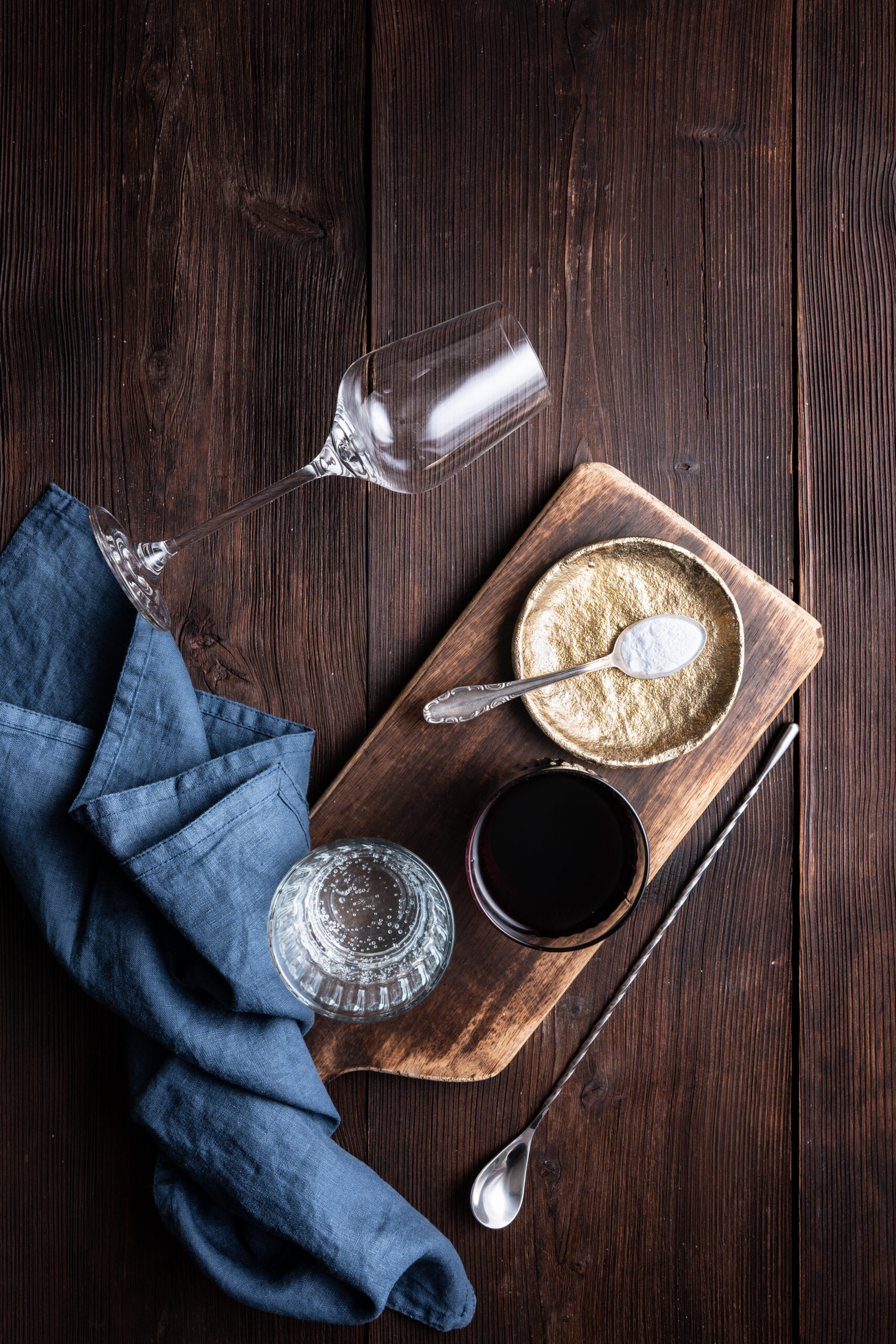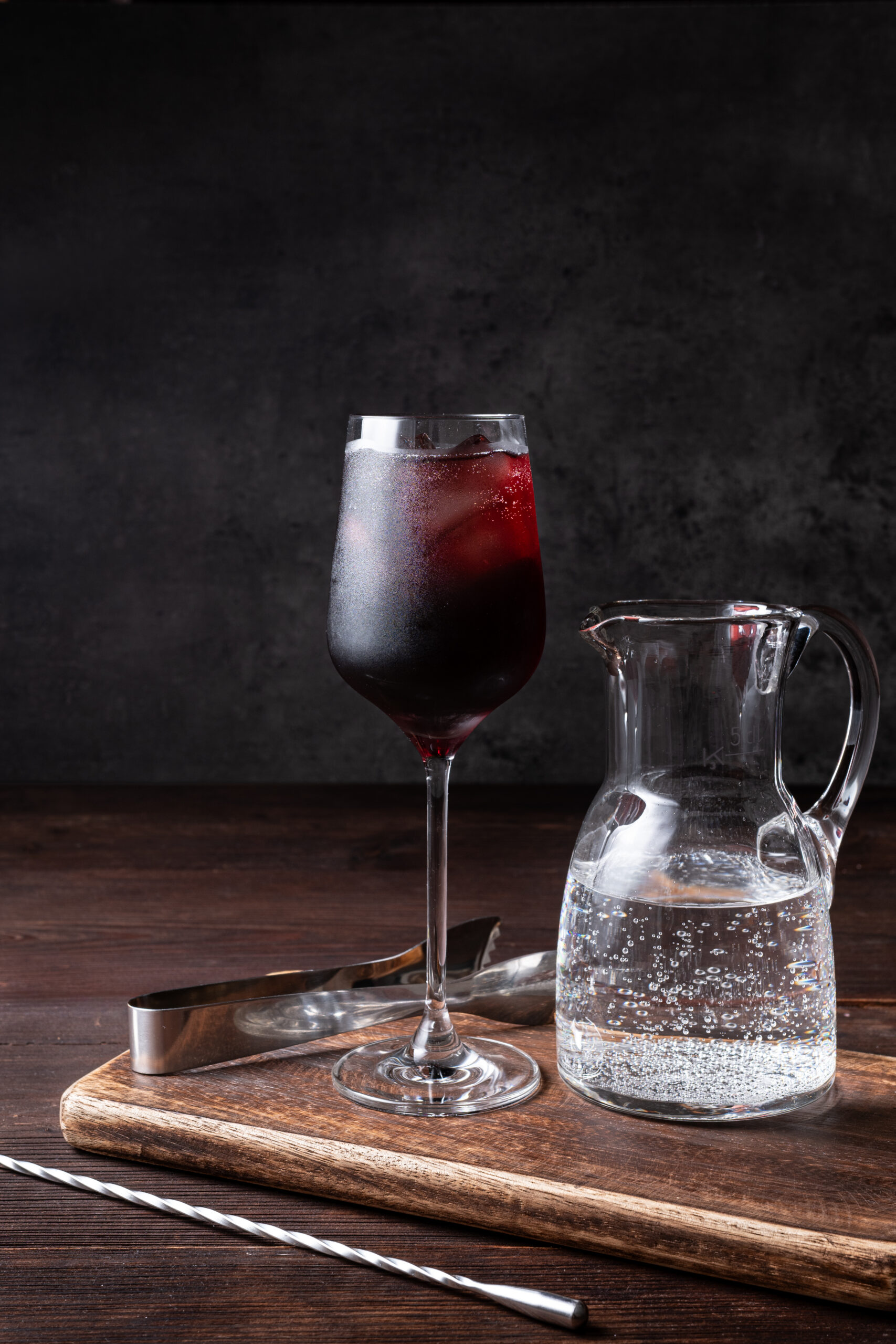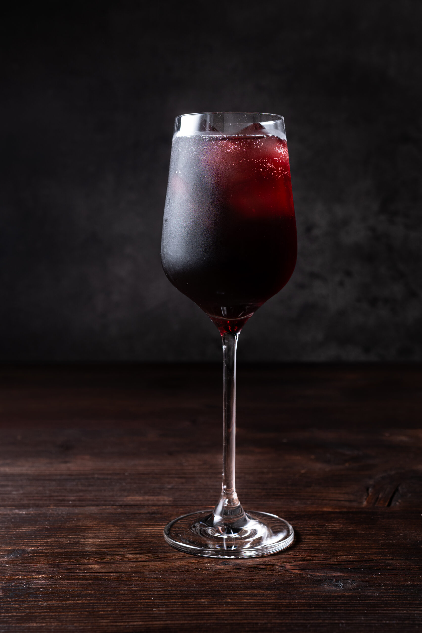- Fill a wine glass with ice and pour in the tart cherry juice.