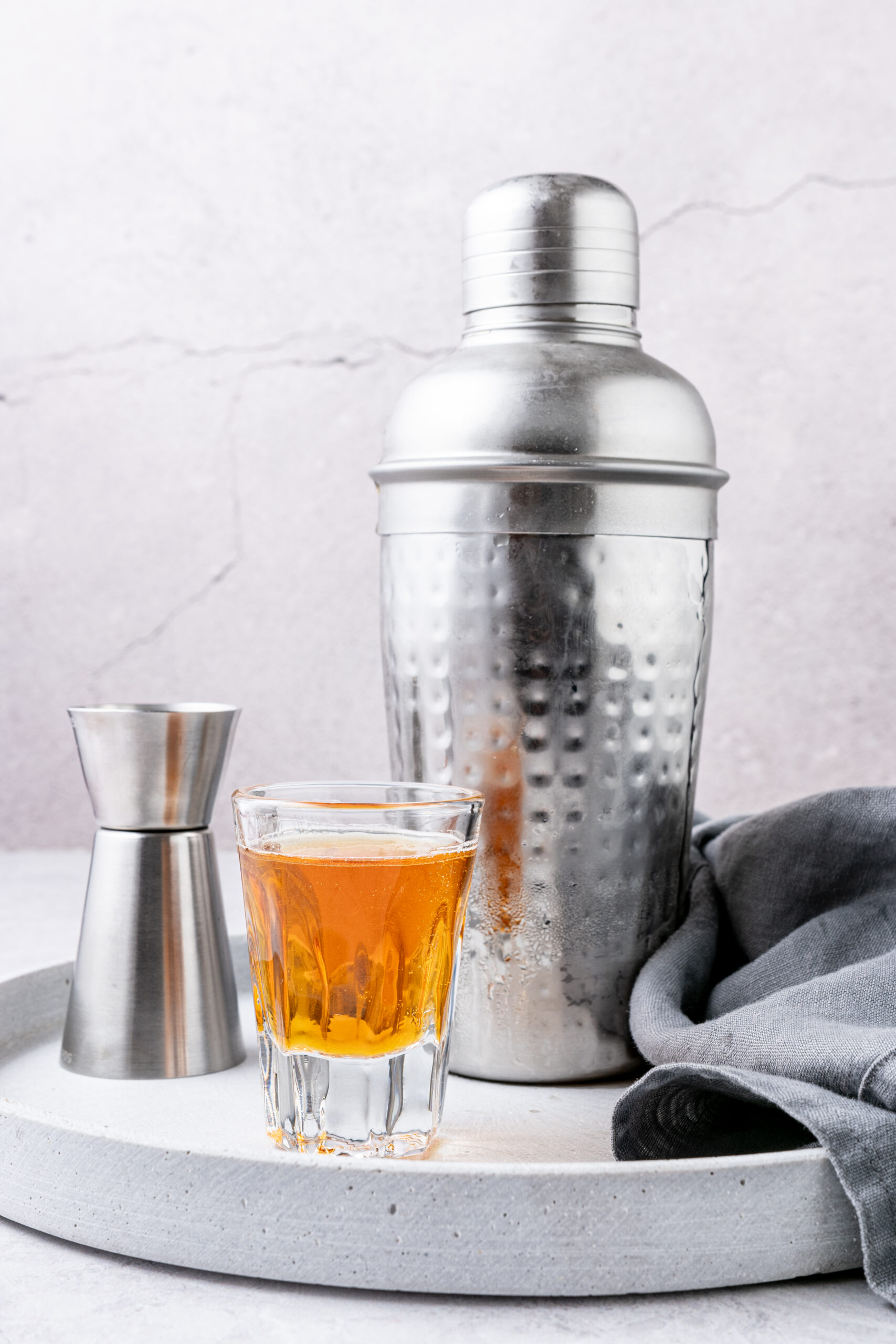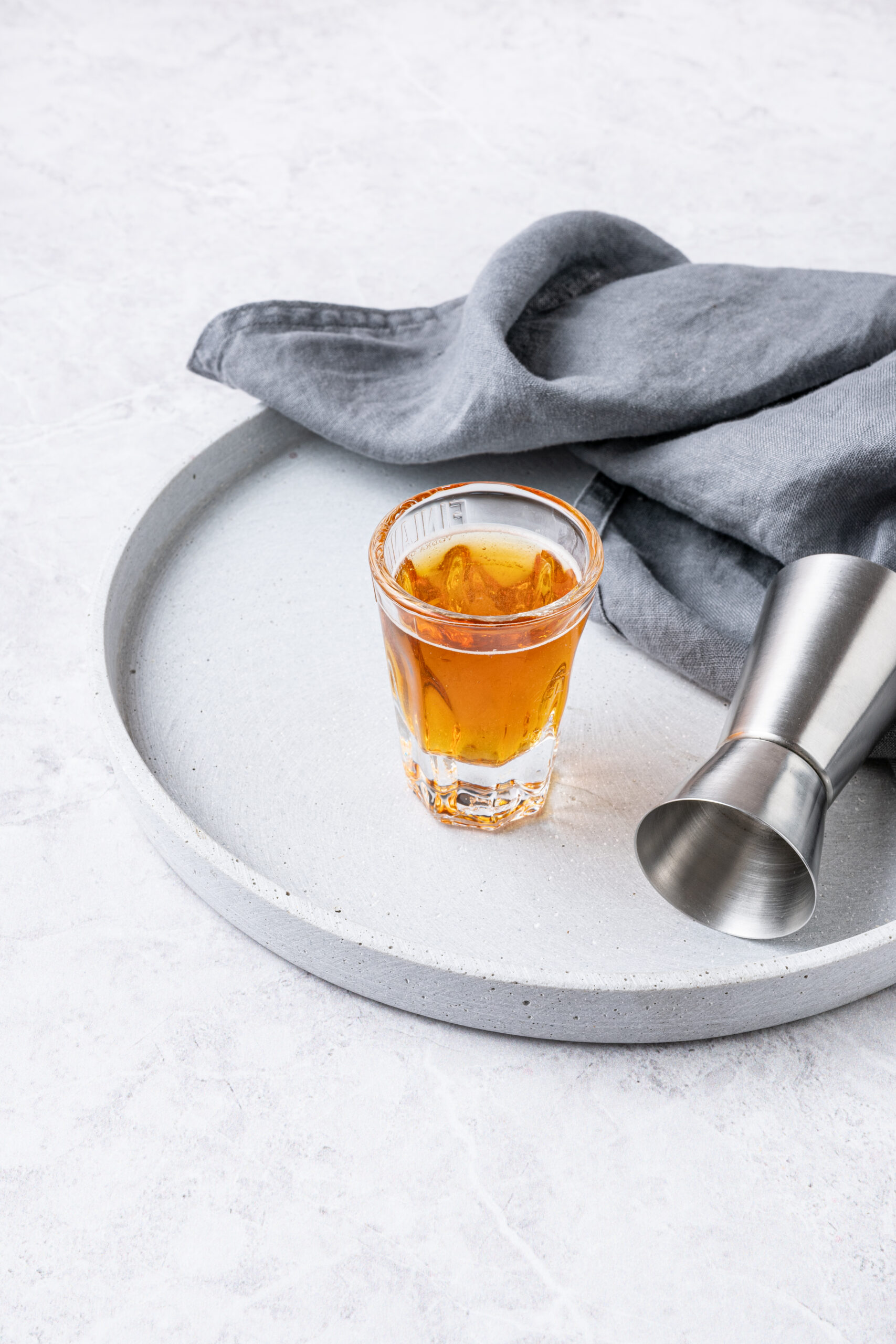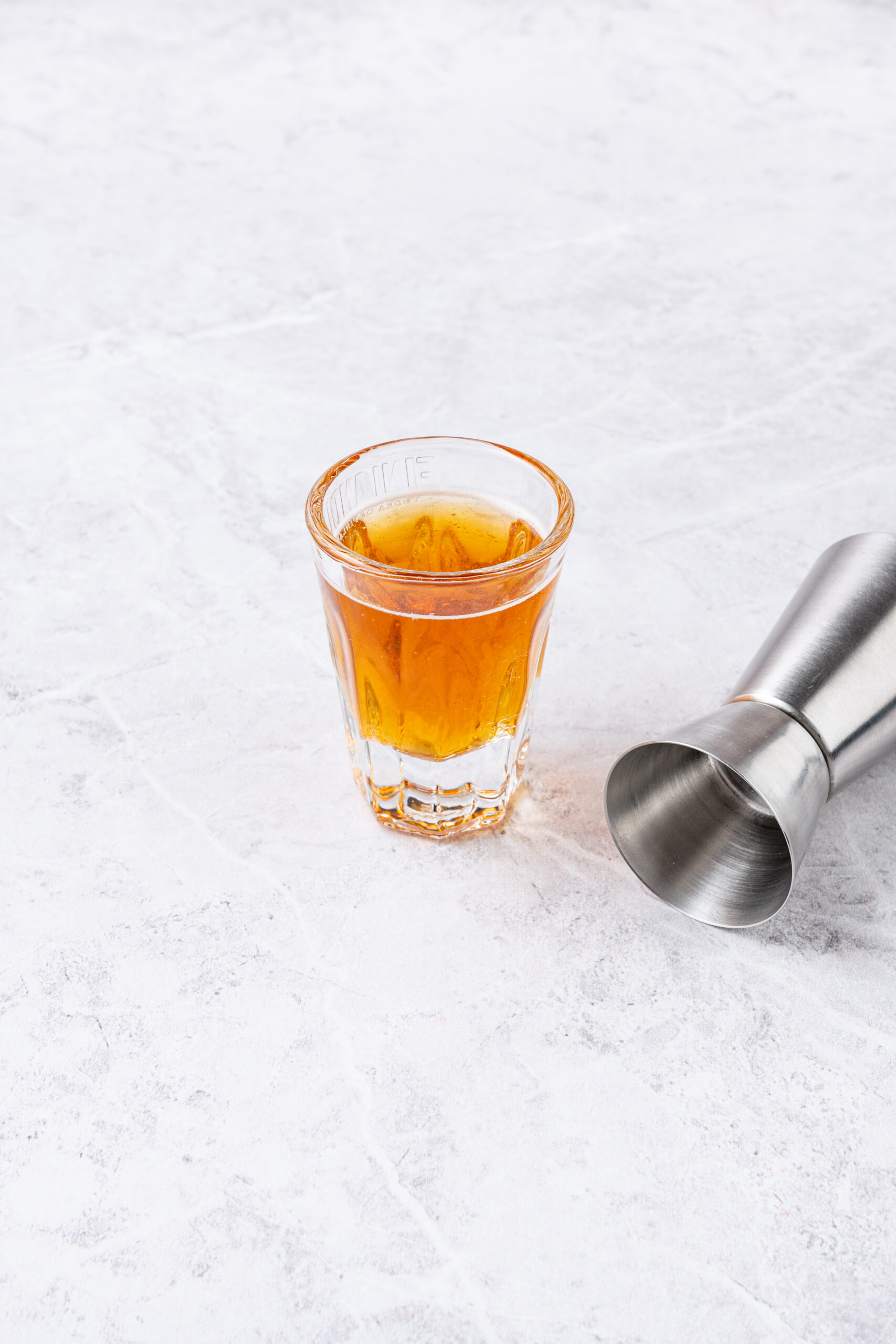 - Strain into a shot glass and serve immediately.