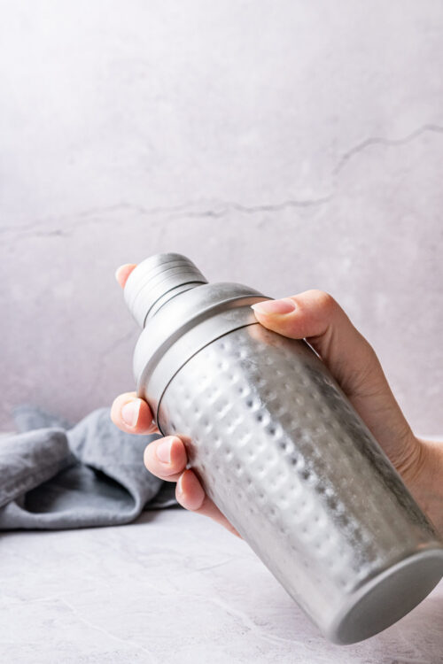 - Shake well until the outside of the shaker is cold.