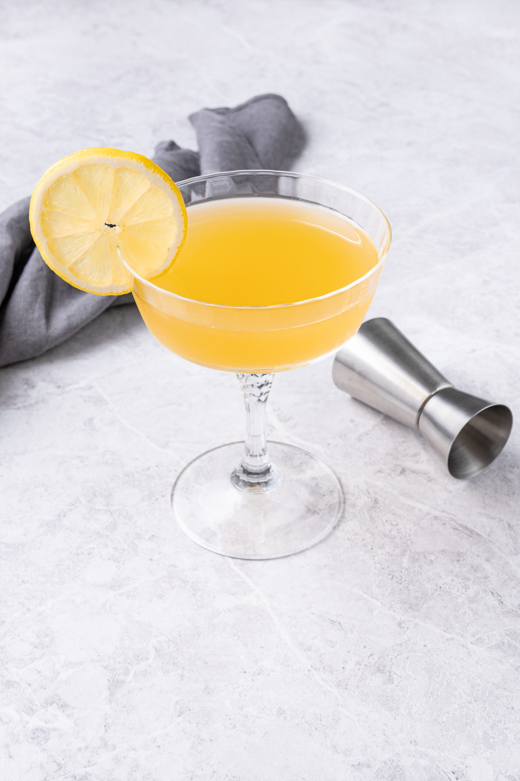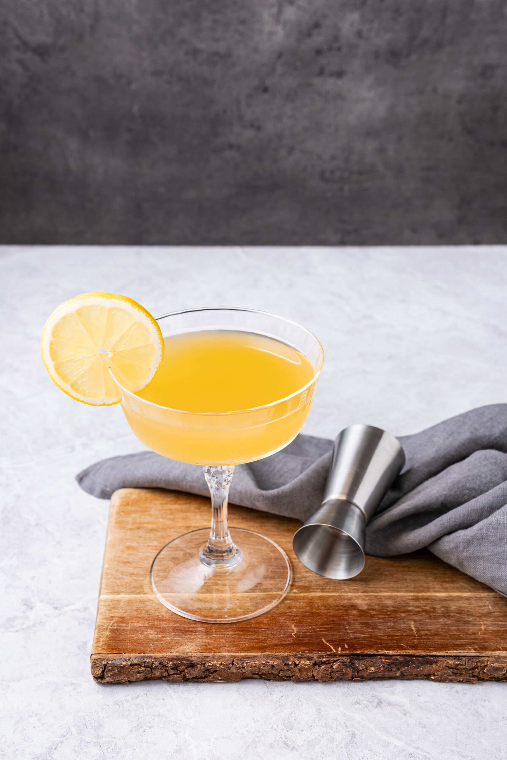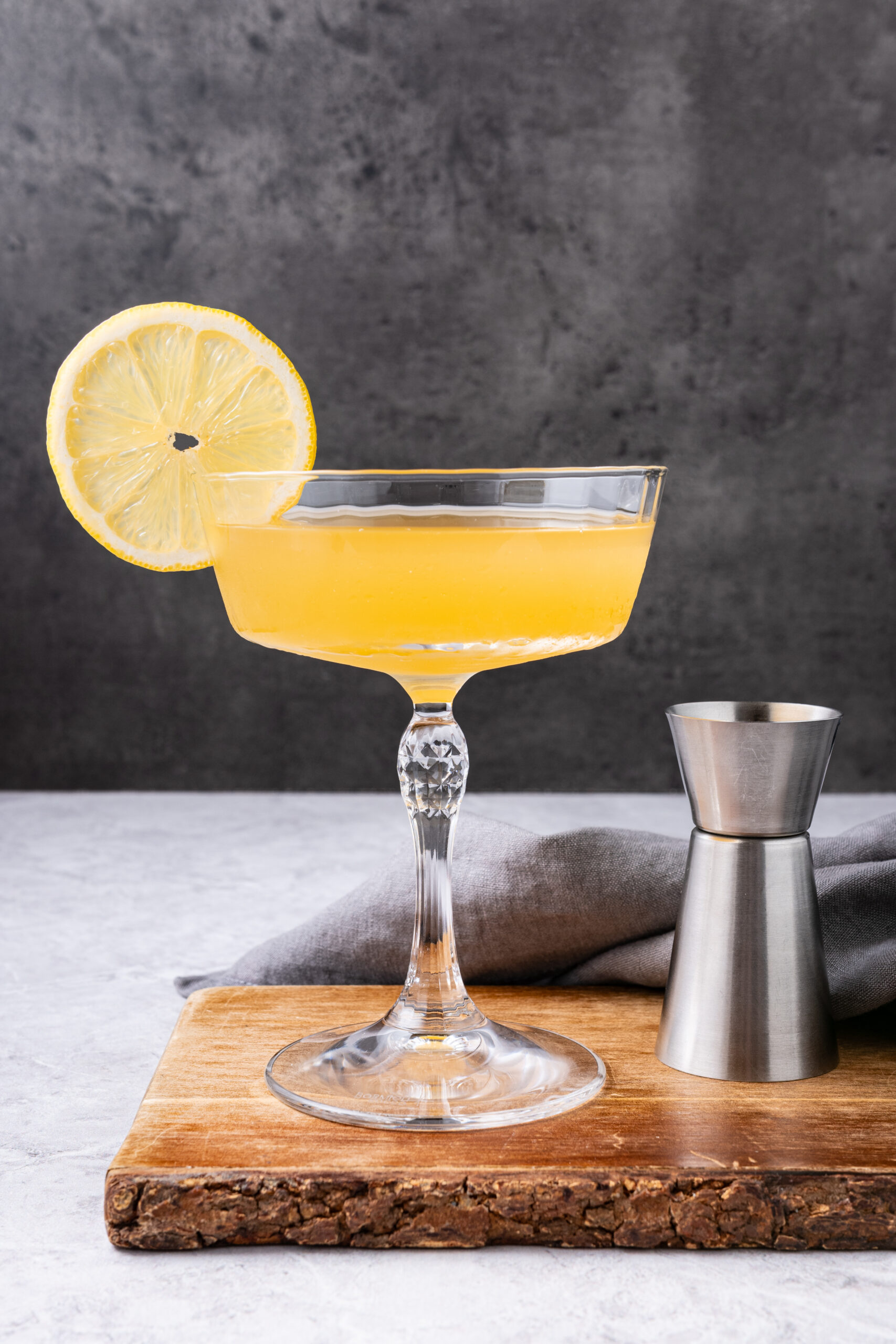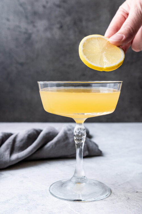 You’ll want a long-stemmed coupe or Nick & Nora glass to serve your Daisy in. Once you’re ready to drink, garnish with a fresh lemon wheel on the rim.