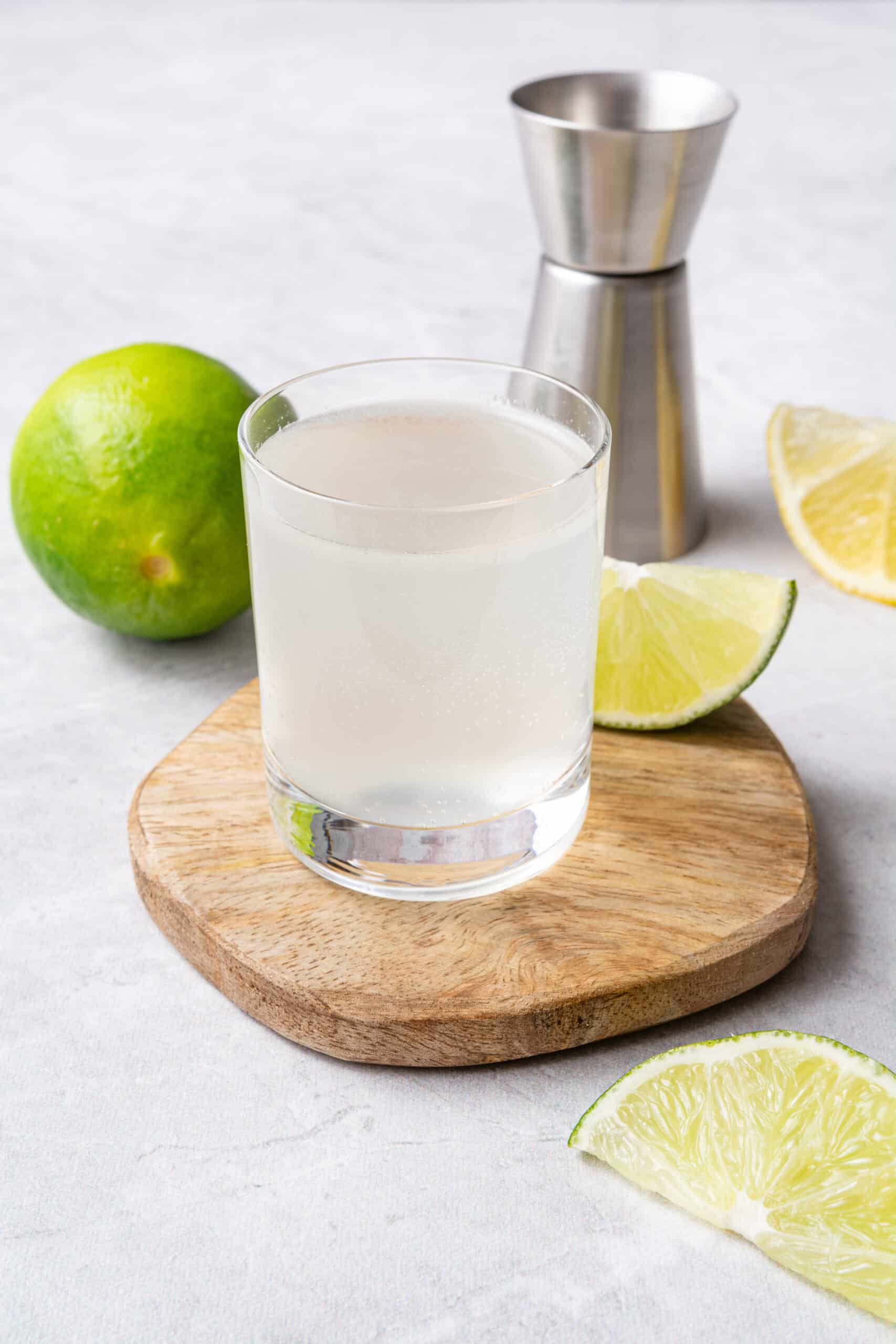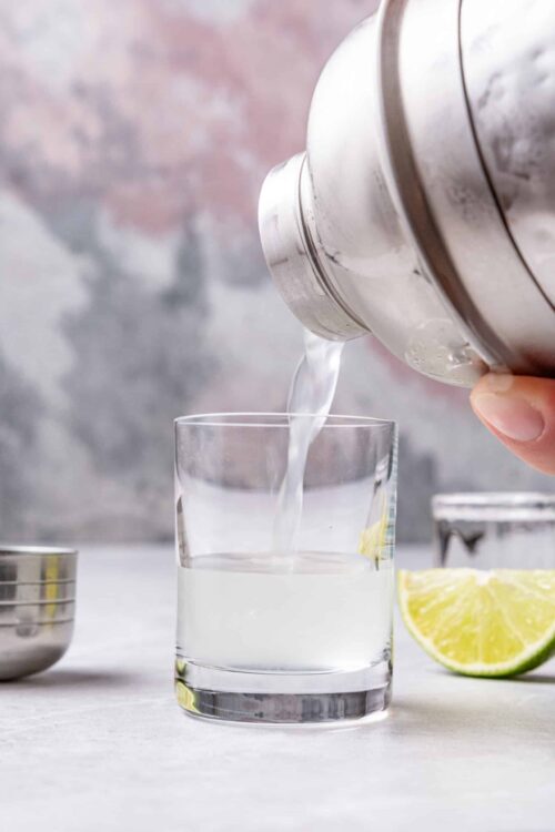 - Strain the chilled mixture into a shot glass and top it off with a splash of lemon-lime soda.