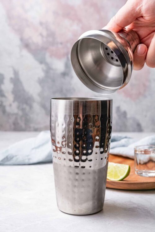 - Secure the lid on the shaker and shake vigorously for about 10-15 seconds until the mixture is well chilled.